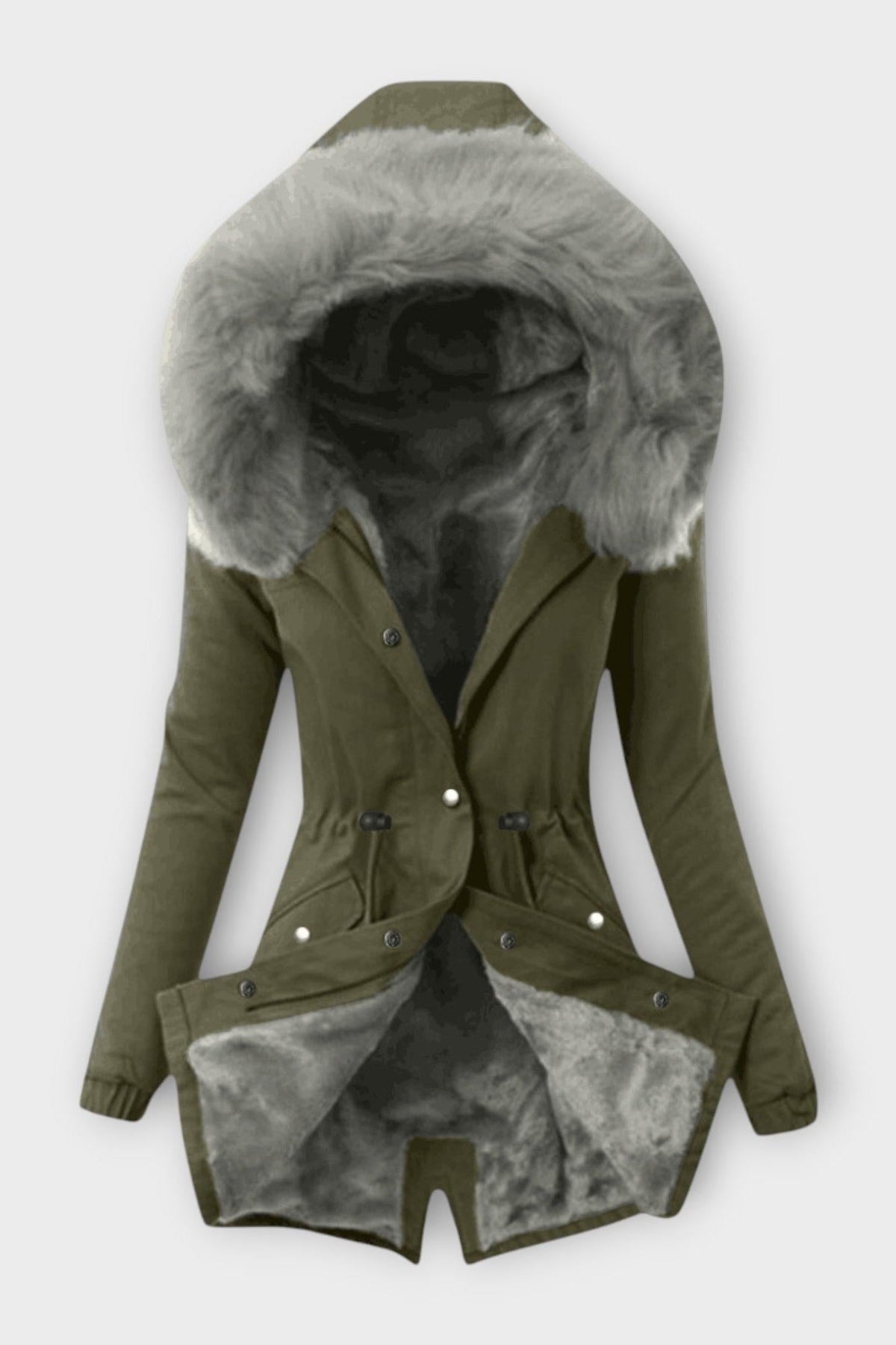 Louise | Winter Jacket Maura is more than just a jacket; it is an essential part of a wardrobe where craftsmanship meets timeless elegance. The fully lined interior provides exceptional warmth and soft comfort, while the weather-resistant outer fabric withstands wind and moisture without compromising on lightness. The hood with faux fur trim adds refinement and extra protection against the cold. Maura represents a legacy of quality and consideration, appealing to those who prioritize lasting style and longevity. Produced in a limited quantity, the coat carries a discreet collector's value and an exclusive touch to any wardrobe where enduring quality meets thoughtfulness.